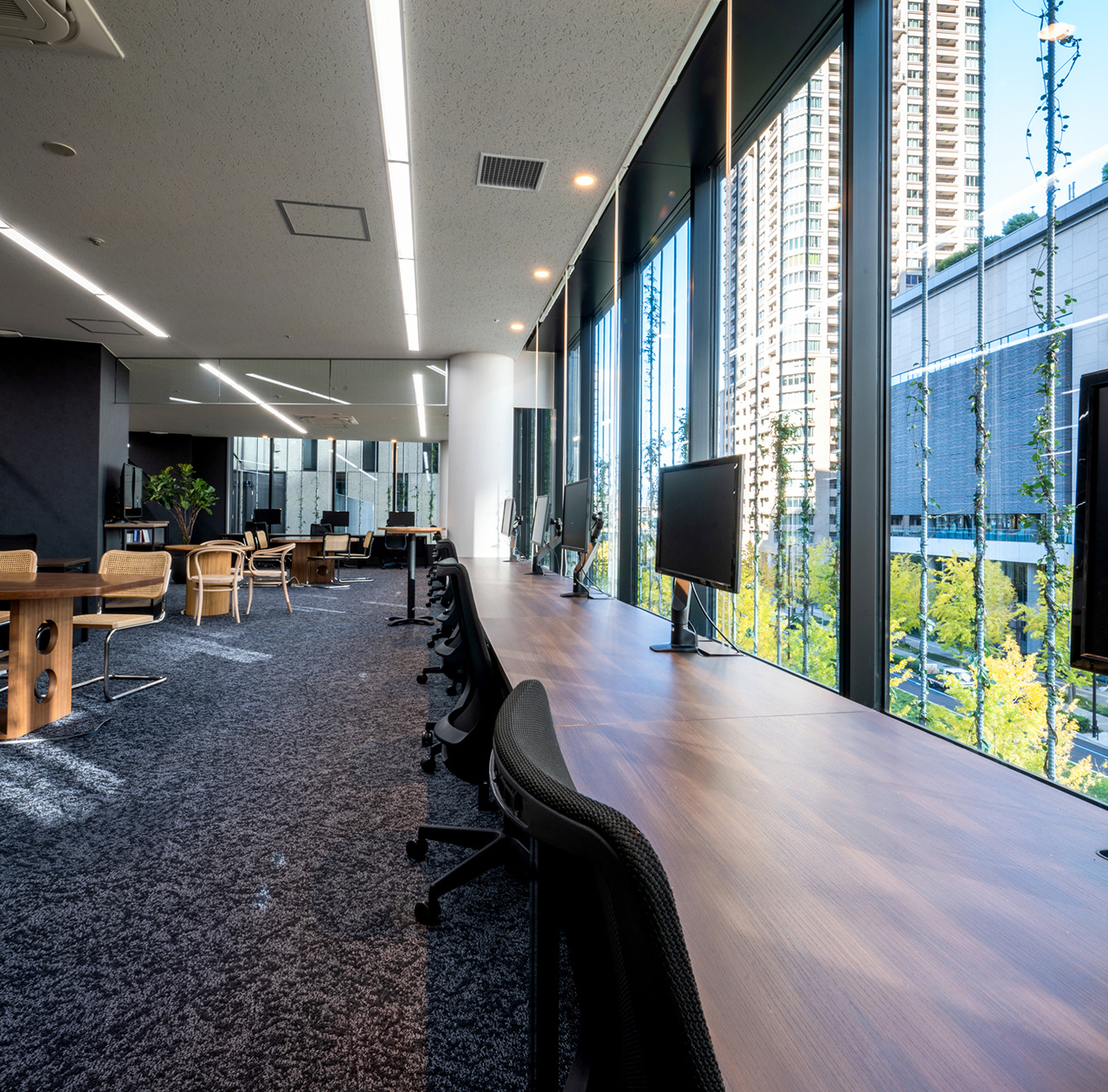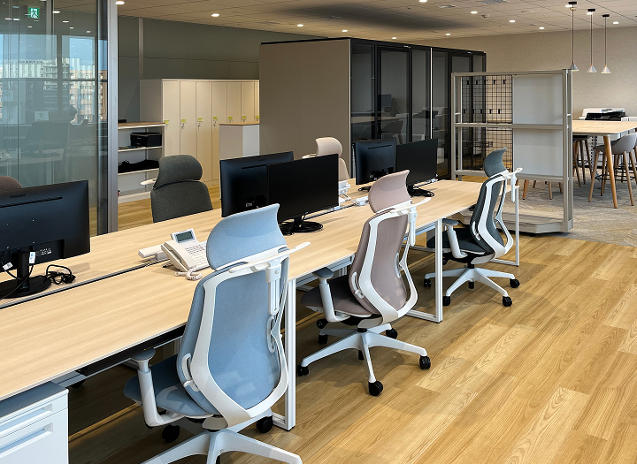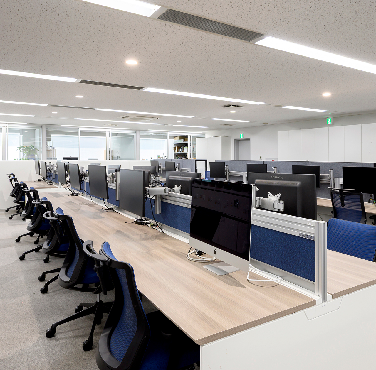 社員一人ひとりが自分らしく、そして最大限のパフォーマンスを発揮できる環境づくりに力を入れています。各地のオフィスはいずれも明るく開放感のある環境で、フリーアドレスを採用。他部署とのスムーズな連携や、その日の業務内容や気分に合わせて最適な場所で働くことができます。各席にはモニターが設置され、各自専用のノートPCを接続してマルチモニターで効率的に作業ができます。